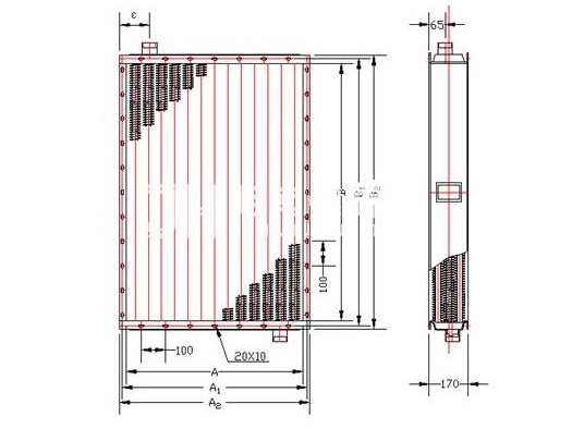 ①—表示鋼制空氣熱交換器(散熱器)通風(fēng)正截面長(zhǎng)尺寸分米化整