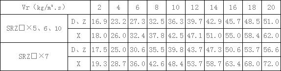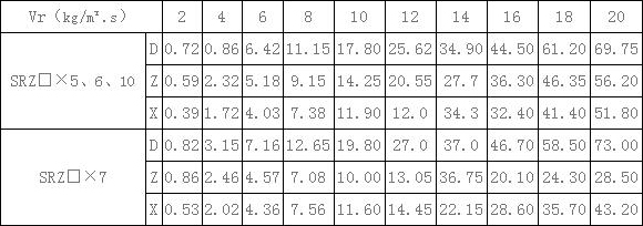 表2、SRZ空氣熱交換器(散熱器)在不同空氣重量流速下的空氣通過(guò)阻力H(毫米水柱)